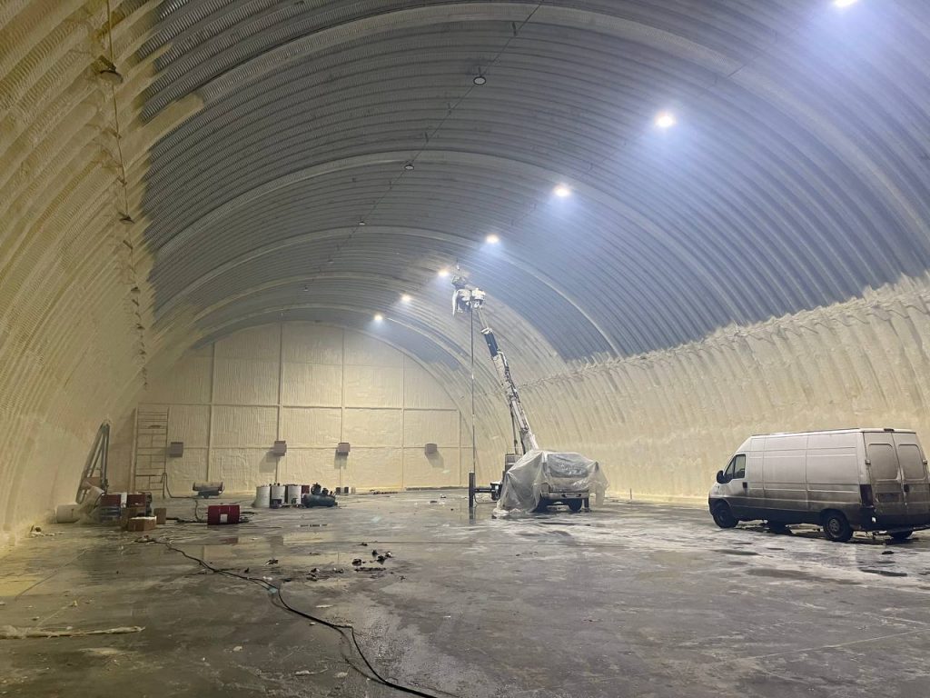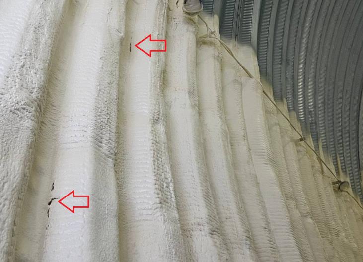 Используется для кровли, чердаков, сложных форм. Часто используется для объёмных объектов. Требовательный к условиям нанесения (температура, влажность). Необходим контроль толщины, проверка однородности структуры, отсутствие пустот, оценка адгезии к основанию.