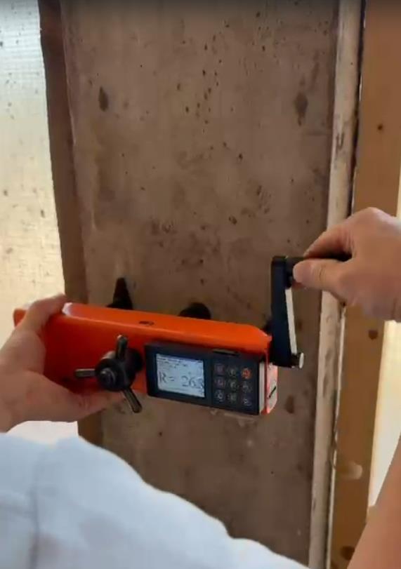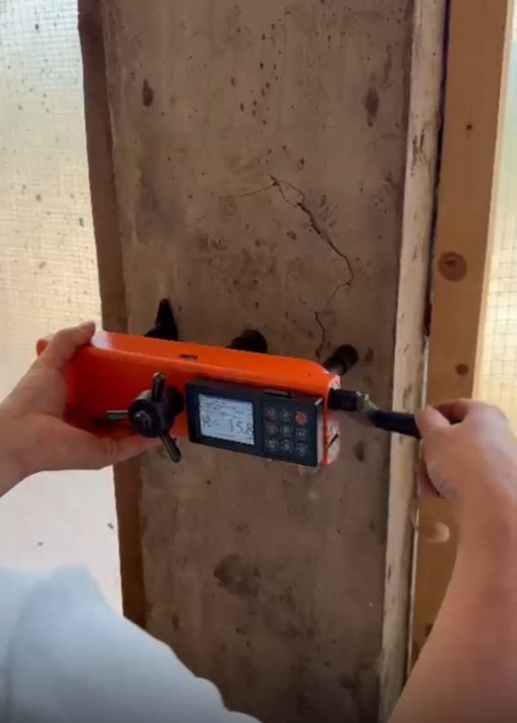 Проведение измерения прочности бетона колоны отрывом со скалыванием